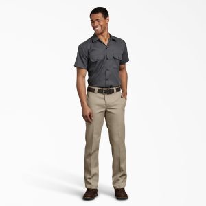 Dickies Men’s 873 FLEX Slim Fit Work Pants are made of durable materials that give you the dependability you need. no matter where your workday takes you. These wrinkle-resistant and stain-resistant pants sit below the waist and have a slim fit through the seat and thighs. with a straight leg. Wide belt loops help evenly distribute weight. And the FLEX fabric has a moisture-wicking finish to help you keep cool. dry. and comfortable all day long.