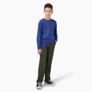 Dickies Boys’ 873 Slim Fit Pants. 4-20 feature the same great style as our men’s 873 pants. but in boys’ sizes 4 to 20. Featuring a slim fit. a straight-leg style. two back welt pockets. and a printed Dickies interior waistband. these pants can help boys look and feel their best. Made of our signature twill blend. this durable fabric has been constructed specifically to be resistant to stains and wrinkles. These also make great school (and after-school) pants.