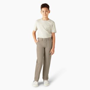 Dickies Boys’ 873 Slim Fit Pants. 4-20 feature the same great style as our men’s 873 pants. but in boys’ sizes 4 to 20. Featuring a slim fit. a straight-leg style. two back welt pockets. and a printed Dickies interior waistband. these pants can help boys look and feel their best. Made of our signature twill blend. this durable fabric has been constructed specifically to be resistant to stains and wrinkles. These also make great school (and after-school) pants.
