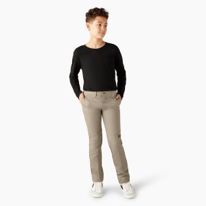 Dickies Boys’ FLEX Skinny Fit Double Knee Pants. 4-20 can handle both quiet days on the couch and tough games on the playground. The reinforced double knees are a game-changer when it comes to protective wear for everyday play. Stain- and wrinkle-resistant. these pants are made of FLEX fabric. That means they move around well. even with the most active boy. Multiple pockets strategically positioned throughout the pants’ sections can hold the day’s treasures. These Skinny Fit Double Knee Pants are easy to wear and even easier to maintain. They come in boys’ sizes 4 to 20.