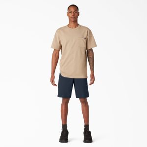 Dickies Men’s Cooling Active Waist Shorts. 11 combine high performance with superior comfort. Temp-iQ® technology is the pinnacle in advanced body temperature control. keeping you cool and comfortable no matter the job. Made of FLEX fabric. these shorts have an 11 inseam and an Active Waist. which offers extra ease. Stain- and wrinkle-resistant material guarantees you’ll stay looking sharp. wear after wear. A built-in cell phone pocket allows convenient access to your device. The shorts have other pockets. too. for your work gear. complete with button closures to keep them safe and secure.