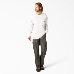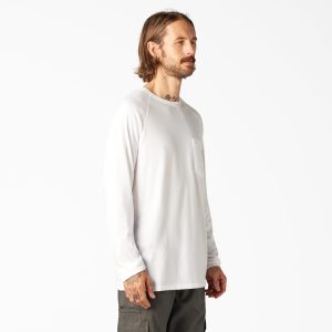 Our high-performance Men’s Temp-iQ® Cooling Long Sleeve Pocket T-Shirt has built-in cooling technology. This crew neck pullover works for you while you work in style. It instantly activates when your skin temperature rises. wicking away moisture so you can stay cool and dry. Its easy-care fabric releases stains too. so you don’t only feel fresh. you also look fresh. Dickies Cooling Long Sleeve Pocket T-Shirt has flatlock seams to reduce chafing and raglan styling to make it easier to move around in it. And the chest pocket with a pencil divider makes it easy to reach for your necessities.