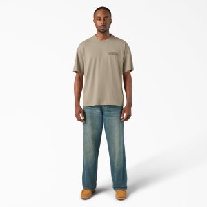 Add this vintage cartoon inspired style to your closet for a go-to staple. The Decaturville men’s graphic t-shirt features a boxy fit. 100% cotton jersey fabric. bubble logo on the chest. and an eye-catching cartoon style waterbased screen print graphic across the back.