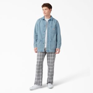 It’s like a jean jacket. just better. With a truly classic silhouette. Dickies Denim Chore Coat epitomizes laid back. casual style in a non-rigid denim with a soft hand feel. The styling opportunities are endless and effortless with this chore coat. Featuring a double needle stitched durable denim construction and perfectly placed chest and waist pockets. you’ll be reaching for this jacket for years to come.