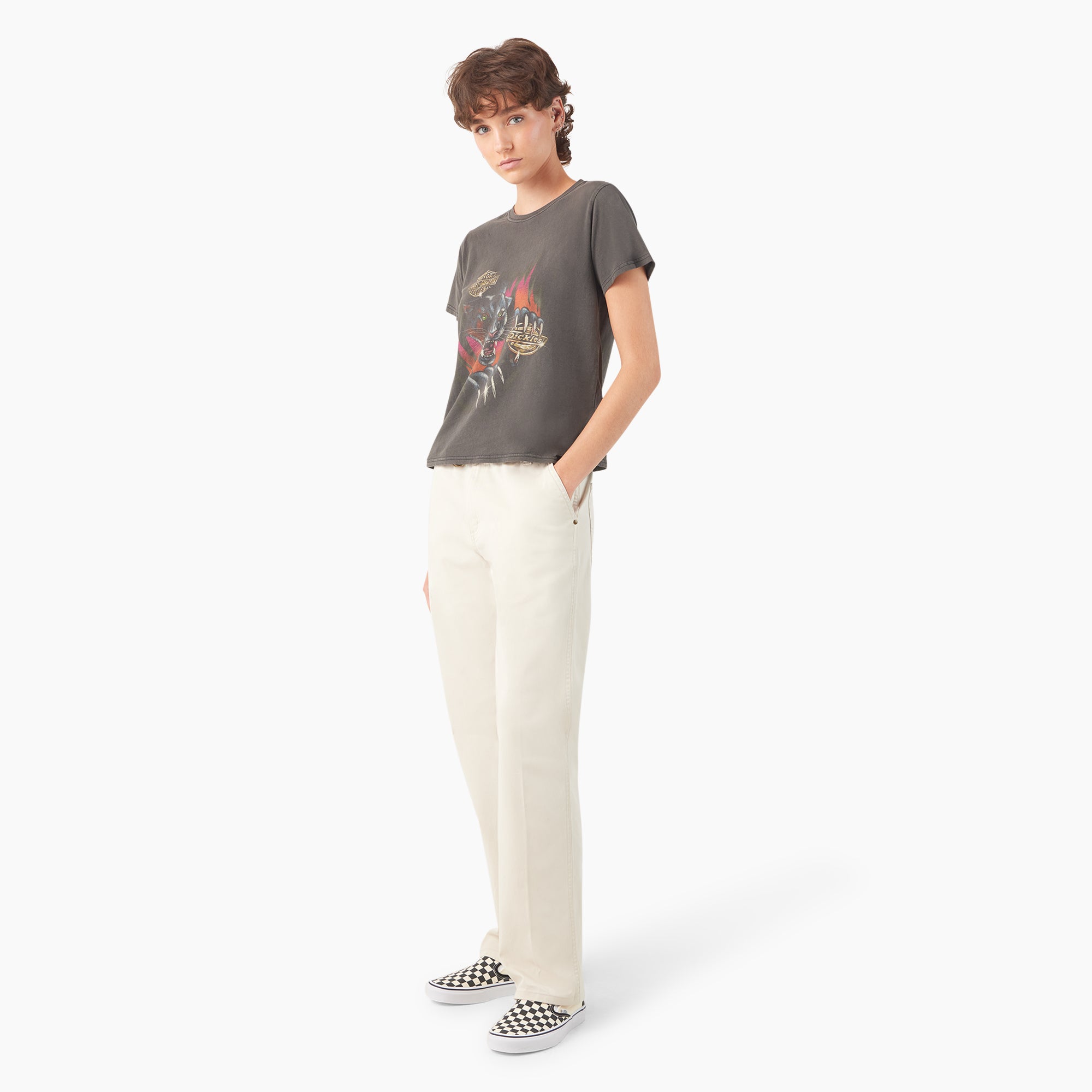 Dickies x Harley-Davidson combines legendary quality with bold designs inspired by a rebellious spirit. This women’s graphic t-shirt combines a relaxed fit and 100% cotton jersey fabric with panther artwork that’s exclusive to this collection. The tee is finished with a pigment wash to lend the style an authentic. worn-in look.