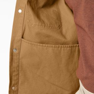 This men’s Duck Canvas Shirt Jacket delivers rugged style and lightweight warmth for any season. The shirt jacket features a regular fit. secure snap-close chest pockets. and a durable 100% cotton brushed duck canvas construction. Our versatile workwear staple is perfect for layering for added warmth.
