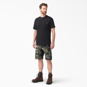 You can keep cool no matter what the situation with these Men’s’ FLEX Cooling Regular Fit Cargo Shorts 11. The innovative Temp-iQ® finish helps regulate your temperature by providing active cooling when you need it most. Mesh pockets hold your essential workplace gear safely stored while letting air flow through for a comfortable fit. Rugged ripstop fabric stays sturdy. even in strenuous jobs. And the FLEX fabric. Active Waistband. 11 inseam. and easy regular fit let you move freely. These cargo shorts ensure you can get the job done even in challenging and hot weather conditions.