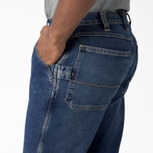 These Men’s FLEX Relaxed Fit Carpenter Jeans bring another side to carpenter pants. A relaxed fit style provides extra room in a straight leg style. with double-needle reinforced stitching for stability. These jeans are constructed from FLEX cotton-blend denim. offering stretchable comfort throughout the workday. We’ve also added a tape measure loop. utility pockets. and even a ruler pocket. So you can keep all your tools within easy reach. yet out of your way.