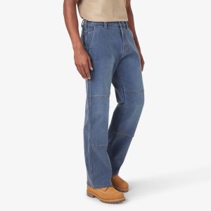 Keep your knees protected as you work on the ground. Our Men’s FLEX Relaxed Fit Double Knee Jeans have openings for knee pads. so you can insert your protective wear without any fuss. These Double Knee Jeans feature a roomy. relaxed fit. with flexibility thanks to the FLEX fabric technology. The pants come in a classic straight-leg style. with utility pockets and a hammer loop. They can handle the most rough and tough workplace days. with a durable stretch that moves along with you.