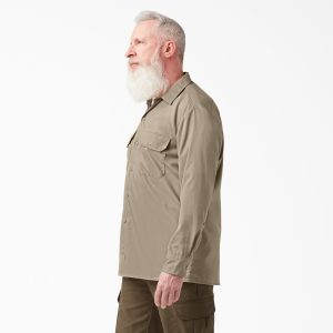 The Dickies Men’s Relaxed Fit Long Sleeve Work Shirt is great for wherever your workday takes you. The comfort FLEX fabric has easy-care stain stain release and stretches to provide ease of movement. Moisture-wicking technology improves fabric breathability and keeps you cool and dry while you work. The shirt features chest flap pockets with button closures. The left pocket even has a divider in place for pencil storage. Feel comfortable on your job site while wearing this lightweight. breathable work shirt.