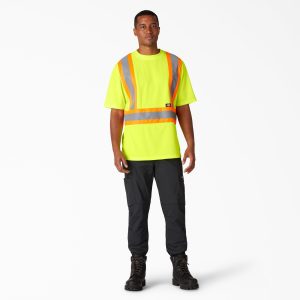 Highway work or any job that takes you outside in the dark will benefit with the help of Dickies Hi Vis Short-Sleeve Safety T-Shirt. The mesh design is covered in reflective tape that keeps you highly visible at night. This breathable t-shirt also is made with moisture-wicking fabric to help you stay cool and dry.