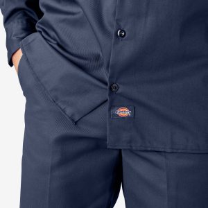 The Dickies Men’s Long Sleeve Work Shirt is one of our classic designs. providing both comfort and style. Made to last. this dependable work shirt. made of durable fabric. has a functional build and non-break melamine buttons. This iconic design features a generous cut through the shoulders and chest that provides freedom of movement. Advanced moisture-wicking technology and an easy-care stain release finish makes this work shirt perfect for both the workplace and for fun after work. The shirt also has two functional chest pockets. including one with a pencil division. doghouse sleeve plackets. and a woven Dickies logo label.