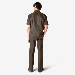 Our Men’s Short Sleeve Work Shirt has been one of our top styles since Dickies started in 1922. There’s a reason this style has stood the test of time. This original work shirt is crafted from our wrinkle-resistant classic twill fabric. with a generous cut through the shoulders and chest that provides freedom of movement. and square hem design for easy tucking. The piece features secure chest pockets with a pencil slot and non-break buttons. The shirt has a moisture-wicking finish to help keep you cool and dry all day long. Wear it buttoned up or over a simple tee.