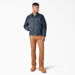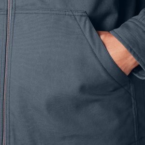 Crafted with 100% cotton duck canvas with a Durable Water Repellent finish. this Men’s Waxed Canvas Service Jacket is wind-resistant and suitable for all of your outdoor and workplace needs. The coat has a classic Dickies design. with a soft. quilted interior. It features contrasting wax-coated piecing for both style and weather protection. The jacket has triple-needle reinforced stitching to add durability. You can store your items in the jacket’s two lined hand pockets. a secure zippered chest pocket. and a back hem stash pocket.