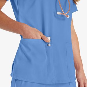 Put on a top that doesn’t clock out with Dickies’ Women’s V-Neck Top. Made of a polyester blend with 5% spandex. this top will stretch with your every move. The front yoke and utility twill tape add to the durability. staying tough-as-nails through every patient. Patch pockets and a pen slot help to see you organized as you check off your to-do list.