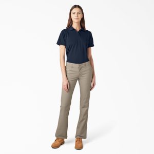 Dickies’ Women’s FLEX Slim Fit Bootcut Pants move along with you thanks to the breathable stretch twill fabric that feels extra soft and offers mobility all day long. These pants feature a contoured waistband with stretch for comfort and coverage. giving you the ability to bend. twist and move without ever worrying about comfort or gaping in the back. Store your gear in the front or back pockets. and feel at your best while you get the job done. Their flattering fit helps you look great at your jobsite.
