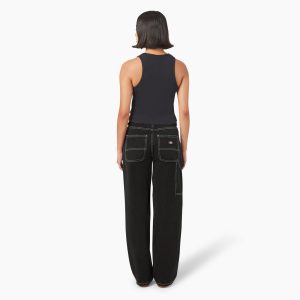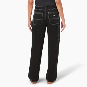 These women’s jeans are crafted from 100% cotton denim and features a mid-rise. loose fit. and straight leg style. The jeans are finished with utility styling for an authentic workwear look.