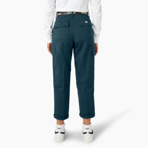 The Dickies Women’s High Rise Fit Cargo Jogger Pants have a proper jogger fit. tapering at the ankle. along with plenty of practical pocketing. Elastic along the back waist provides a comfortable custom fit for easy all-day wearability and straightforward styling that works all year round. This simple style has a tack button closure and dual front slash pockets. The high-rise. flat-front cargo pants also feature rear patch pockets and functional dual-side cargo pockets. These pants are good for both the workplace and the weekend.