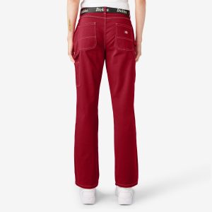 These women’s loose fit jeans are crafted from 100% cotton denim and feature authentic carpenter styling. The carpenter pants have a carpenter pocket. hammer loop. and heavy contrast stitching. They’re also equipped with rounded carpenter back pockets and a casual fit perfect for daily wearing.