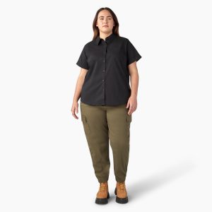 Button up your looks with Dickies’ Women’s Plus Stretch Button-Up Shirt. It’s a professional looking shirt with features that will keep you comfortable. The stretch poplin material and back pleat make it possible for you to move around how you need to. while the fabric still stays soft and durable. The bust darts provide you with a more fitted look that you’ll feel confident wearing. The design also features a hi-lo hem that keep you covered so you can bend and stretch without becoming revealing.