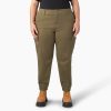 The Dickies Women’s Plus High Rise Fit Cargo Jogger Pants have a proper jogger fit. tapering at the ankle. along with plenty of practical pocketing. Elastic along the back waist provides a comfortable custom fit for easy all-day wearability and straightforward styling that works all year round. This simple style has a tack button closure and dual front slash pockets. The high-rise. flat-front cargo pants also feature rear patch pockets and functional dual-side cargo pockets. These pants are good for both the workplace and the weekend.