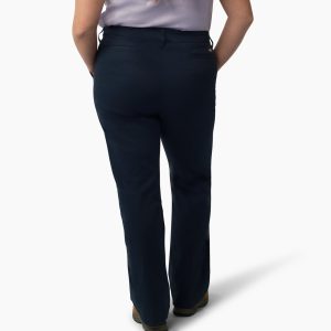 Discover the new standard in comfort and mobility when it comes to your favorite work pants. Dickies Women’s Slim Bootcut Twill Pants offer straight forward styling with features that enhance your comfort and mobility day in and day out. The slight stretch twill fabrication allows for ease of movement and the contoured waistband prevents gapping in the back. Sitting just below your waist. these go-to bootcut pants are equipped with a front button closure and dual back welt pockets. ensuring easy wearability at work or for casual everyday styling.