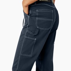 Dickies Women’s Relaxed Fit Carpenter Pants provide the utility of traditional carpenter pants with a more modern fit that is perfect for those who work hard. Sturdy with some stretch. these pants were built to last and help you do your job. The pants feature a hammer loop in traditional carpenter styling. front slash pockets. a watch pocket. rear patch pockets. and utility pockets. Each pair comes with a simple yet stylish Dickies logo belt.