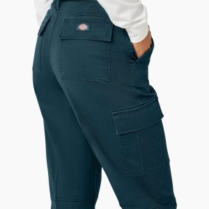 These women’s cargo pants have a classic workwear design with a modern fit you can count on from the workday to the weekend. The high-rise cargo pants feature a relaxed fit. casual cropped length. and a contoured waistband. They’re crafted from a stretchy. cotton-blend twill for all-day comfort and are equipped with rear and side cargo pockets for functionality.