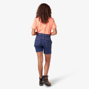 These women’s carpenter shorts are built from durable. stretchy denim fabric and equipped with utility features that work for every task. The work shorts have spacious pockets. reinforced details. utility loops. a classic mid rise. and 7 inseam for coverage.