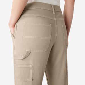 Dickies Women’s Slim Straight Fit Roll Hem Carpenter Pants are designed with the utility features you need in classic workwear pants with a modern fit. The pants feature the traditional carpenter detailing with a hammer loop. side utility pockets. dual front slash pockets. and rear patch pockets with the Dickies iconic woven label. A rolled hem at the ankle cuff and contrast stitching along the pockets and seams give the pants a stylish look. Yet these pants are sturdy enough for the workplace.